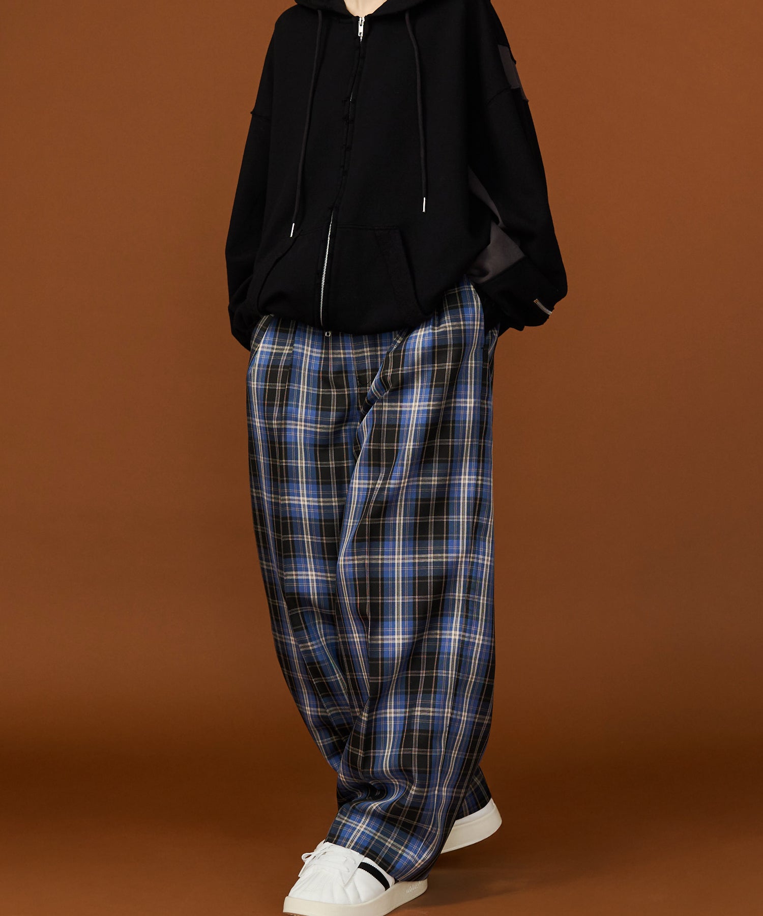 ◾️クラシックなスラックスの品格と、ストリートのワイドパンツのリラックス感をクロスオーバーさせた、大人のためのチェックワイドパンツ。