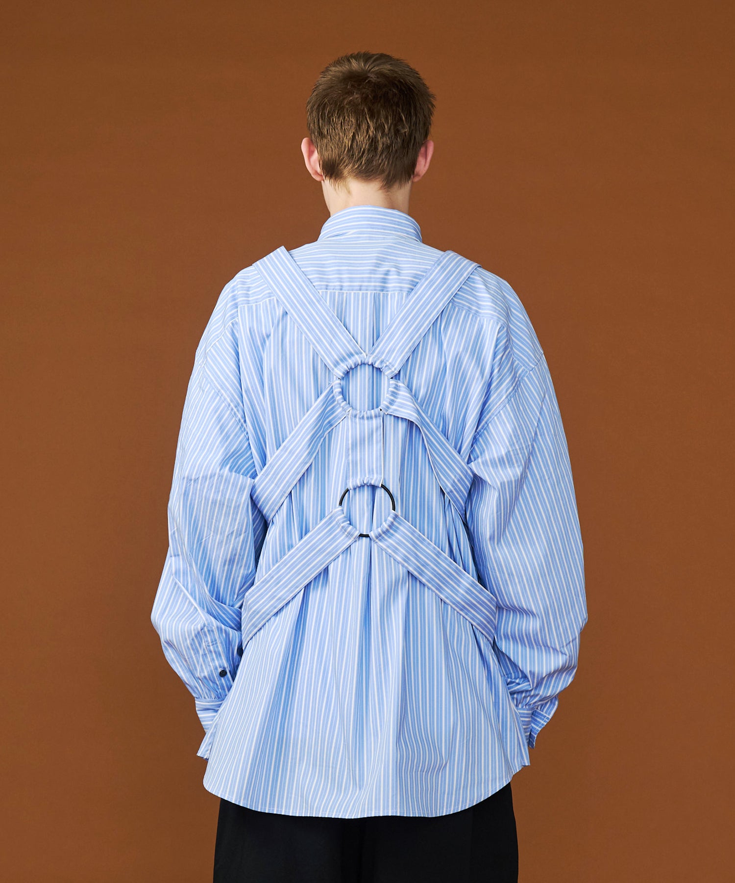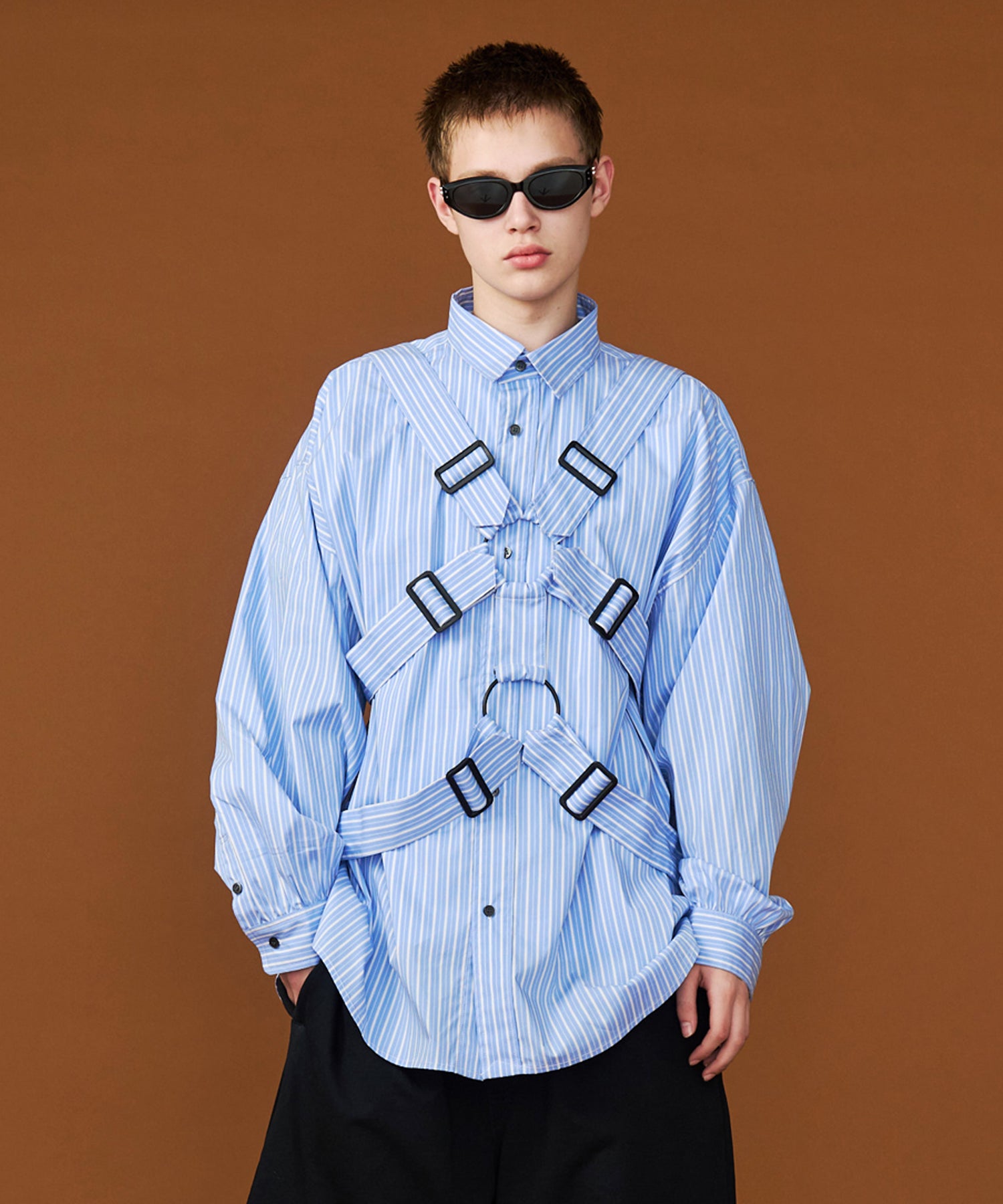 ◾️ベースとなるシャツは、空気を含んだようなリラックスシルエット。男女問わず着用できるジェンダーレスなサイズ感で、ハーネスの締め付け具合によってシルエットに抑揚をつけることも可能な、遊べるスプリングシャツです。