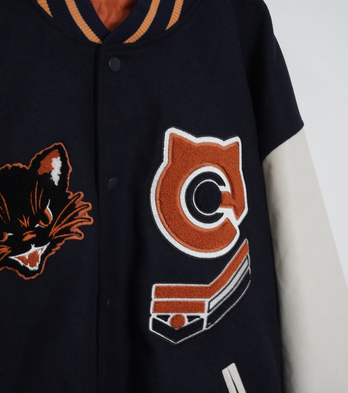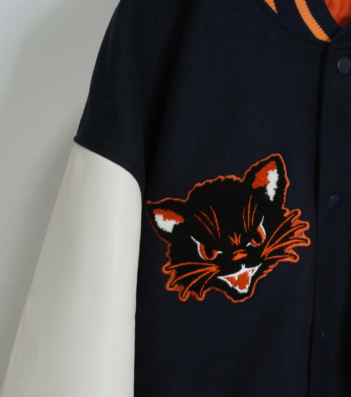 ◾️昨シーズン大好評を博した NEKOMATA TEE の世界観を、クラシックなスタジアムジャケットで表現した待望の新作。