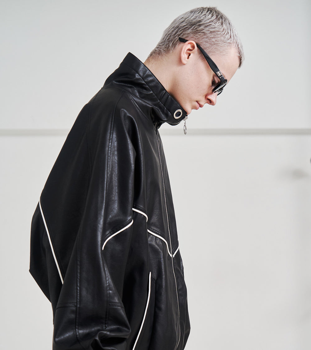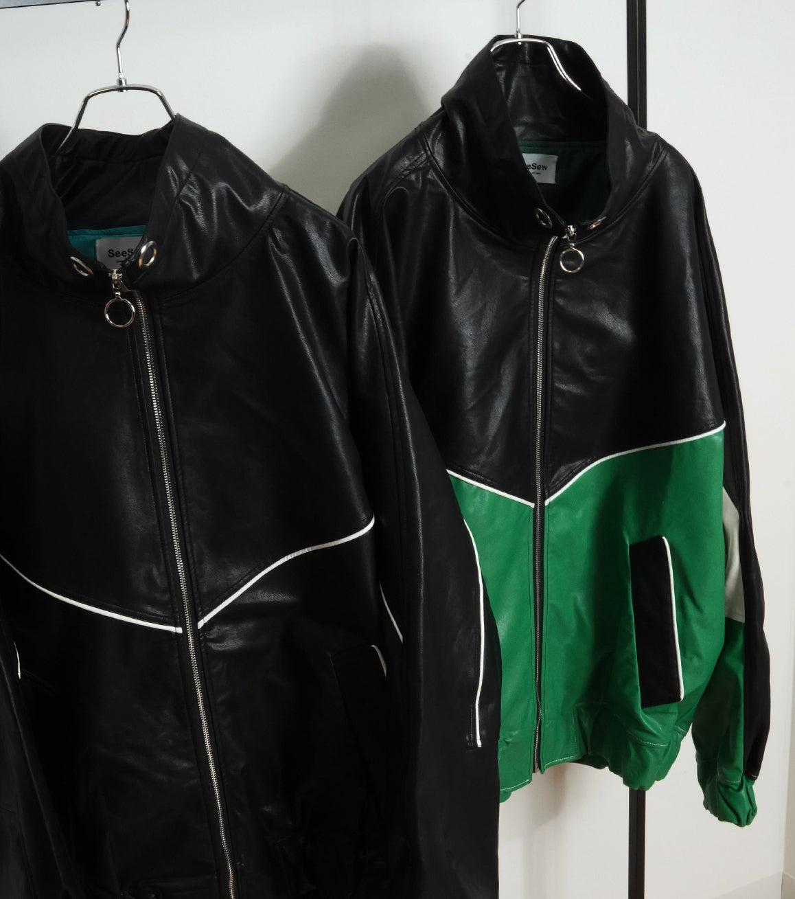 ◾️レザージャケットの存在感とスポーティーなカッティングを融合させたNEWアウター【SYNTHLETHER PIPING JACKET】。