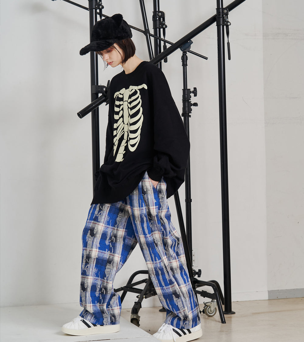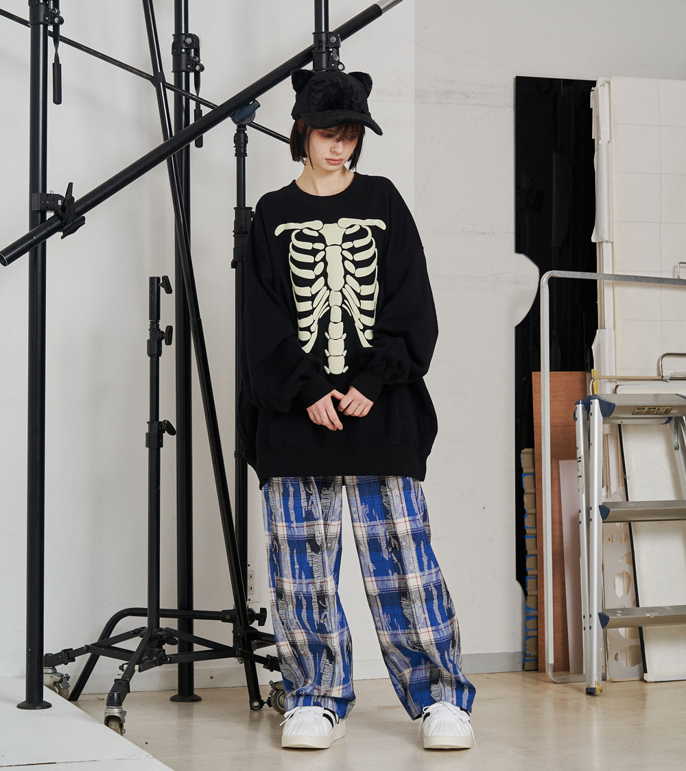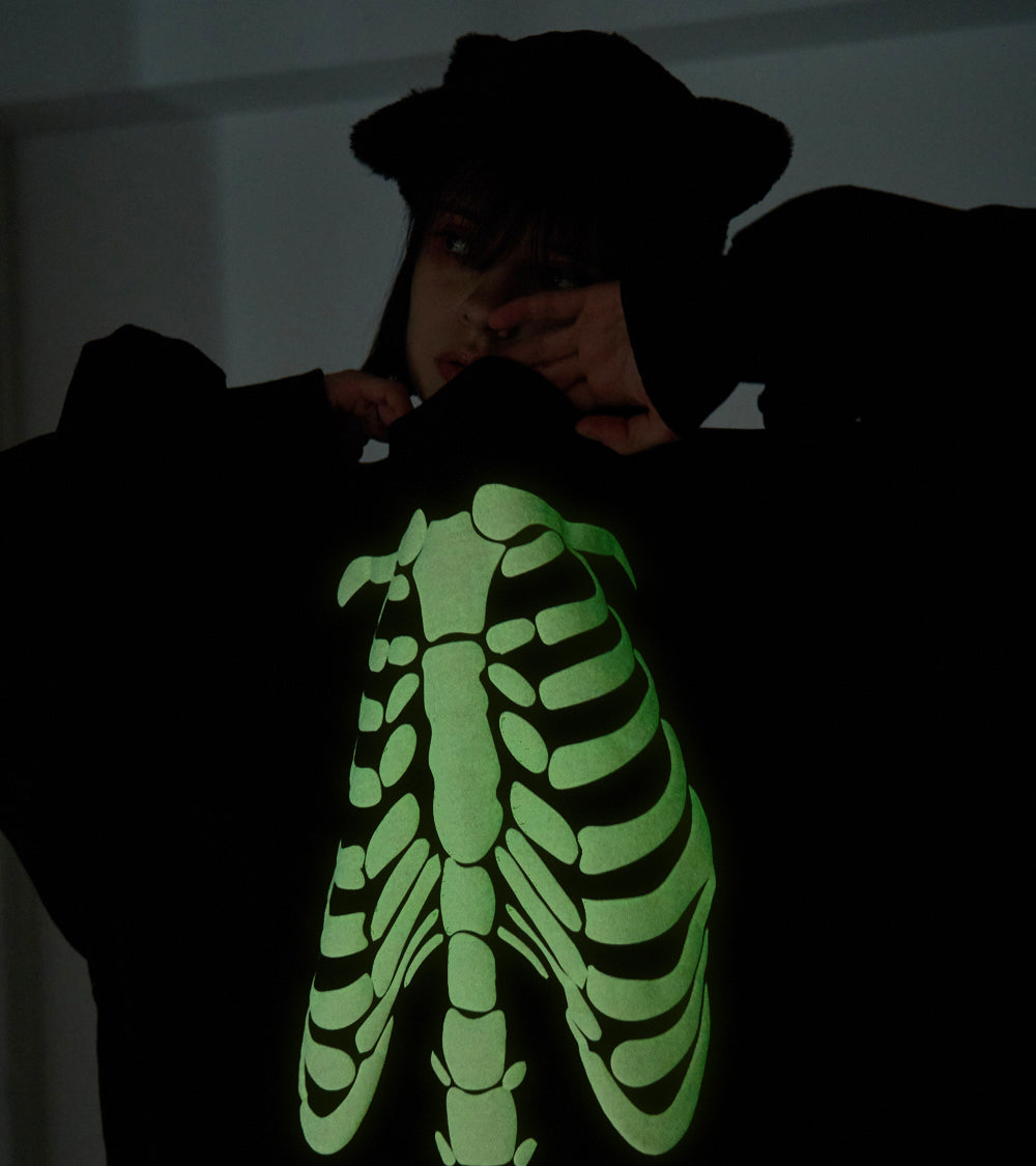 ◾️最大の特徴はボーン部分に採用した『蓄光加工プリント』日中は大胆でキュートなグラフィックプリントとして機能し、暗闇では骨部分が幻想的に光る驚きの仕掛けを搭載。昼と夜で全く異なる表情を見せるトランスフォーマブルなデザインです。
