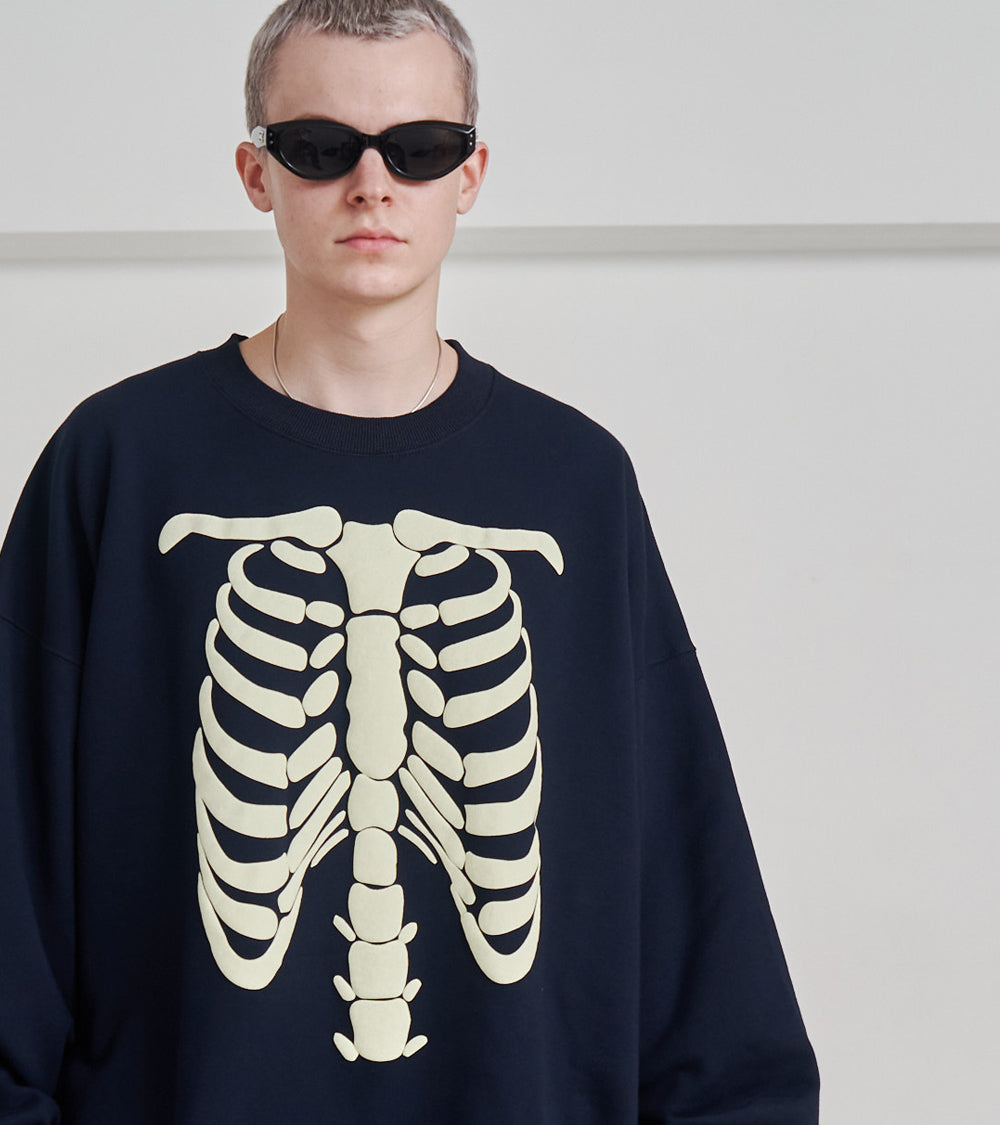 ◾️トレンドのボーンデザインを、従来のリアルでホラーな表現から脱却し、曲線のみで描かれた"ポップでキャッチー"なボーングラフィックとして昇華。ハードになりがちなスカルモチーフを親しみやすく現代的な印象に変換した、新感覚デザイン。