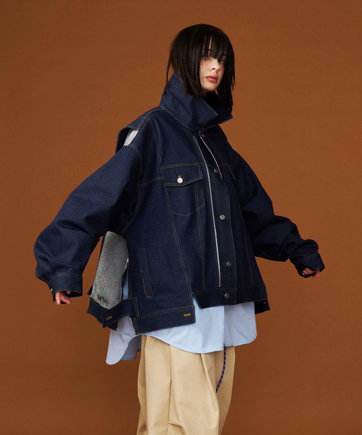 ※260005 DENIM CURVE PANTS と同素材・同色の展開です。セットアップでもお楽しみいただけます。